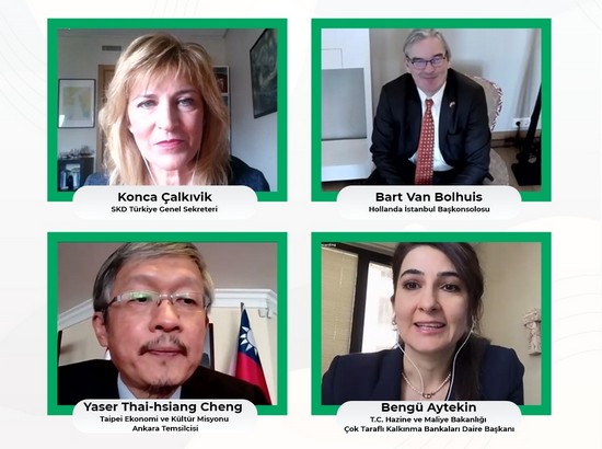 Ayrıca “Türkiye’de Düşük Karbonlu ve Döngüsel Bir Ekonomik Toparlanma İçin İş Birliği Çağrısı” relansmanı da SKD Türkiye Yönetim Kurulu Başkanı Ebru Dildar Edin ve EBRD Türkiye Başkan Vekili Hande Islak’ın sunumuyla katılımcılarla paylaşıldı. Çağrı, Hollanda İstanbul Başkonsolosu Bart Van Bolhuis, Taipei Ekonomi ve Kültür Misyonu Ankara Temsilcisi Yaser Thai-hsiang Cheng ve T.C. Hazine ve Maliye Bakanlığı Çok Taraflı Kalkınma Bankaları Daire Başkanı Bengü Aytekin’in katıldığı panelde derinlemesine değerlendirildi.