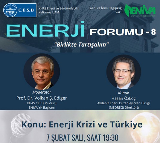 Merkezi (CESD) ile Enerji ve İklim Değişikliği Vakfı (ENİVA) tarafından düzenlenen “Enerji Forumu” etkinliğinin sekizincisi, 7 Şubat Salı günü saat 19.30‘da online olarak gerçekleştirilecektir.