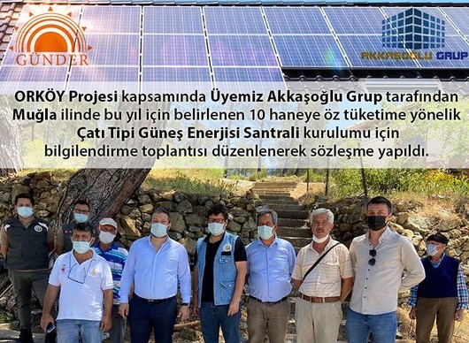 Orman Köylerinde Güneş Enerjisinden Elektrik Üretimi için Sürdürülebilir Finans Mekanizması Projesi (ORKÖY PV) kapsamında Akkaşoğlu Grup tarafından Muğla ilinde bu yıl için belirlenen 10 haneye öz tüketime yönelik Çatı Tipi Güneş Enerjisi Santrali kurulumu için bilgilendirme toplantısı düzenlenerek sözleşme yapıldı.