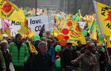 Gösteriler Alman Çevre ve Doğayı Koruma Birliği (BUND), “Anti-Atom” Örgütü, “campact” ve “