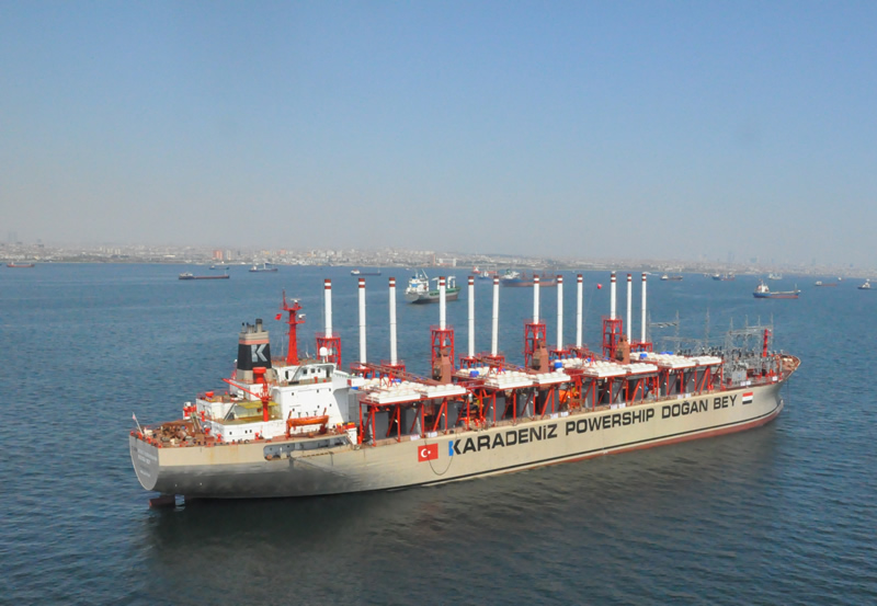 Türkiye’de bu alanda hizmet veren tek firma olan Karadeniz Holding bünyesinde 7’si bitmiş, 2’si yapım aşamasında 9 enerji gemisi bulunuyor. Toplam kurulu gücü 1072 megavat olan gemilerin 3’ü Basra’da, 2’si Lübnan’da, 1′i Dubai’de, 1′i de Pakistan’da bulunuyor. Tuzla Tersanesi’nde yapımı süren iki geminin, 2015′in ilk aylarında faaliyete geçmesi öngörülüyor. Karadeniz Holding, enerji santrali gemilerinden birisini, gerekli izin ve onayların alınmasının ardından, acil elektrik ihtiyacının karşılanması için Gazze’ye gönderileceğini açıklamıştı.