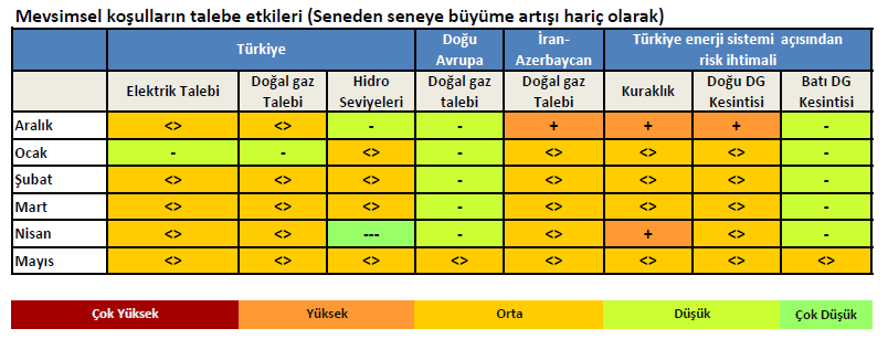 Raporda, Aralık ayında Türkiye enerji sistemi açısından doğal gaz kesintisi yaşanma ihtimalinin yüksek olduğu belirtilirken, hidroelektrik santrallerin rezervlerinin düşük olduğuna dikkat çekildir. Hidroelektrik santrallerin rezerv miktarının Nisan ayında çok düşük olacağı belirtildi