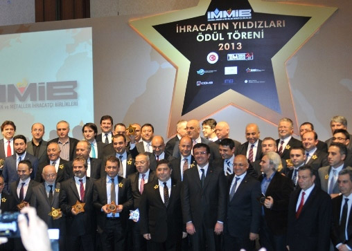 Türkiye’nin toplam ihracatının yaklaşık yüzde 30’unu gerçekleştiren altı birliği bünyesinde barındıran İstanbul Maden ve Metaller İhracatçı Birlikleri (İMMİB), bu başarıya imza atan yıldız şirketleri ödüllendirdi. İMMİB 2013 İhracatın Yıldızları Ödül Töreni dün (19 Şubat 2014 Çarşamba) akşam İstanbul Swissôtel’de düzenlendi. İMMİB Koordinatör Başkanı Tahsin Öztiryaki’nin açılış konuşmasıyla başlayan törende, TİM Başkanı Mehmet Büyükekşi ve Ekonomi Bakanı Nihat Zeybekci de birer konuşma yaptı.