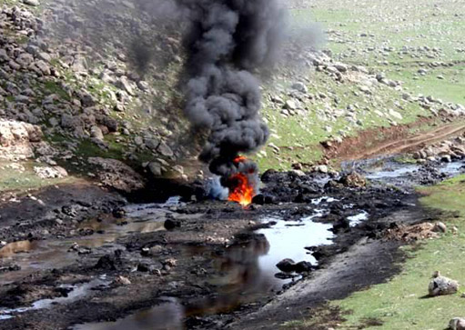 Irak ordusunun Kerkük’ü terk etmesi ve kente konuşlanan peşmergelerin IŞİD grupları ile meşgul olmasından yararlanan hırsızlar, Kerkük’ün güneyindeki Kone bölgesinden geçen boru hatlarından ham petrol çalıyor.