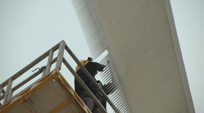 İspanya’da Burgos yakınlarında yer alan rüzgar gülü tarlasında teknisyenler rüzgar güllerinin sesini azaltmak adına yeni bir sistem üzerine çalışıyorlar.