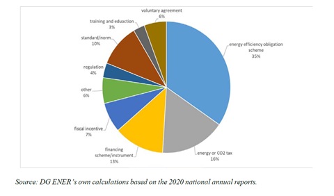 Şekil 1- AB Düzeyinde Politika Önlemi Türüne Göre Bildirilen Enerji Tasarrufu Payı