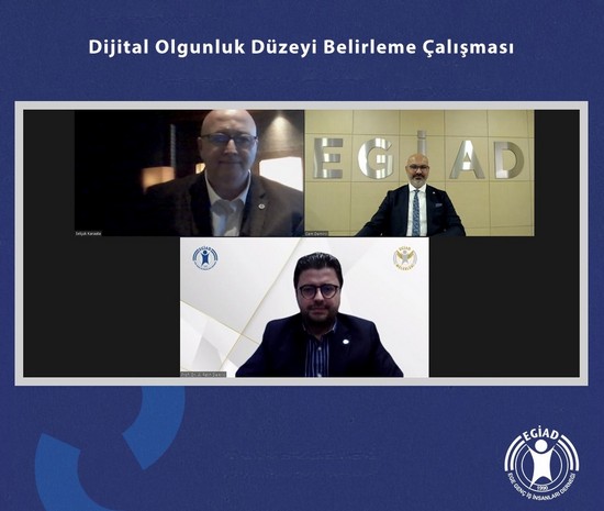 “Dijital Olgunluk Düzeyi Belirleme Çalışması” düzenlenen bir webinar ile EGİAD üyelerine aktarıldı. Toplantıya EGİAD Başkan Vekili Cem Demirci ev sahipliği yaparken, moderatörlüğü EGİAD Genel Sekreteri Prof. Dr. Fatih Dalkılıç gerçekleştirdi.
