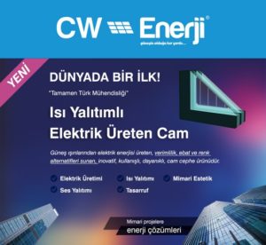 Antalya Organize Sanayi Bölgesi’nde fotovoltaik güneş paneli üreten CW Enerji, inovatif ürünlerine bir yenisini ekleyerek, yüzyılın Isı Yalıtımlı Elektrik Üreten Camı olarak tabir ettikleri yeni ürünleri ile güneş panelinden elektrik üretiminin yanı sıra güneş panellerinde görsellik unsurunu da ön plana çıkarmıştır. Firma, yüzyılın Isı Yalıtımlı Elektrik Üreten Camı olarak tabir ettikleri sistemle gelecek yüzyılın binalarının tasarlanabileceğini ve ürünün hem inşaat firmalarına hem de kullanıcılarına ısı yalıtımının yanı sıra güneşten elektrik üretimi gibi yan faydalar sağlayacağını belirtiyor.