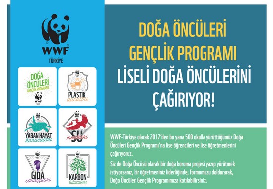 WWF-Türkiye (Doğal Hayatı Koruma Vakfı) 2017’den günümüze 500 okulla yürüttüğü Doğa Öncüleri Gençlik Programı’na lise öğrencileri ve lise öğretmenlerini çağırıyor. Doğa Öncüsü olarak bir doğa koruma projesi yazıp yürütmek isteyen lise öğrencileri, bir öğretmenleri liderliğinde Doğa Öncüleri Gençlik Programı’na