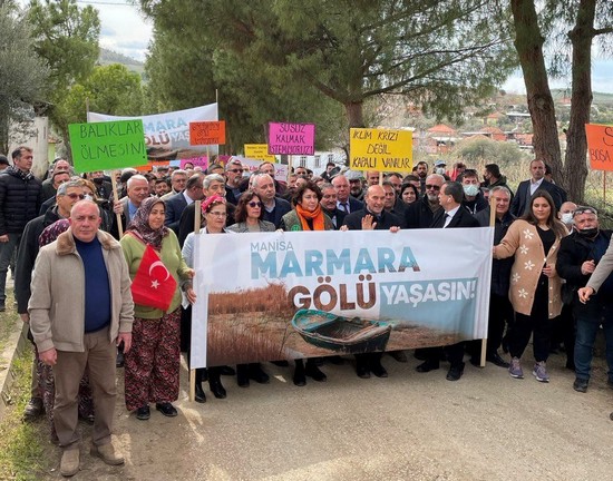 Doğa Derneği Yönetim Kurulu Başkanı Dicle Tuba Kılıç ise “Anadolu’nun sulak alanları yıllardır yanlış tarım ve su politikalarıyla yok ediliyor. Kurumakta olan Marmara Gölü için 22 Mart Dünya Su Günü’nde bir araya geldik. Gördes Barajı’ndan Marmara Gölü’nün hakkı olan su verilmeli. Marmara Gölü’nün tam olarak restore olması için tarımsal su tüketiminin azalması gerekiyor. Marmara Gölü bir sulak alandır, tarım alanı değildir. Sulak Alanların Korunması Yönetmeliği’ne aykırı olmasına rağmen gölün tabanı sürülmüş ekin ekilmiş. Göl tabanında tarımsal faaliyetlere göz yumanlar gölün kurumasını isteyenlerdir.” dedi ve ekledi “Bugün Marmara Gölü’ne su verilirse, Türkiye’de su hakkını bekleyen diğer sulak alanlar için örnek bir adım olacak. Türkiye’nin su politikalarını ivedilikle güncellemesi ve iklim değişikliğini de göz önünde tutarak sulak alanlarını restore etmesi gerekiyor”.