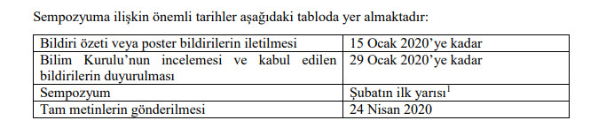 Sempozyuma ilişkin önemli tarihler aşağıdaki tabloda yer almaktadır: