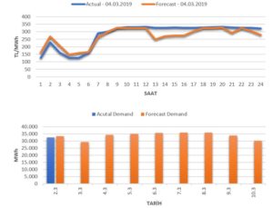 *Tahminleme Modeli; istatistiksel tahminleme metodu olan SARIMA (Seasonal Autoregressive Integrated Moving Average) kullanılarak MATLAB yazılım geliştirme platformunda hazırlanmıştır. Model ve diğer tüm kullanılan veriler dahilinde girdi verileri olarak EPİAŞ Şeffaflık Platformunda günlük yayınlanan piyasa takas fiyatları ve gerçekleşen tüketim verileri kullanılmaktadır. Model ile ilgili detaylı bilgi alabilmek için lütfen iletişime geçiniz.