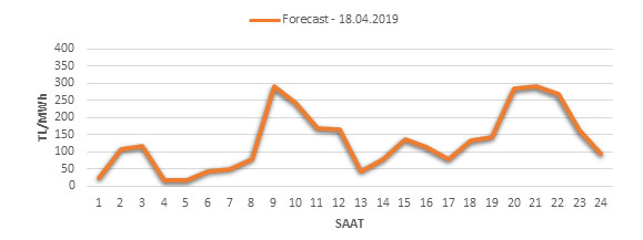 Yarından sonraki gün için oluÅŸacak ortalama piyasa takas fiyatı 132.43 TL/MWH olarak tahmin edilmektedir. Buna baÄŸlı olarak günün maksimum fiyatı 292.52 TL/MWh olarak 20:00 – 21:00 saat aralığında, minimum fiyatı 16.61 TL/MWh olarak 04:00 – 05:00 saat aralığında gerçekleÅŸeceÄŸi öngörülmektedir. Puant saatlerde (17:00 – 22:00) tahmini ortalama piyasa takas fiyatı ise 214.62 TL/MWh olarak hesaplanabilmektedir. Saatlik oluÅŸacak piyasa takas fiyatı tahminleri aÅŸağıdaki grafikte yer almaktadır.