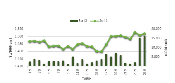 Bir önceki gün ile kıyaslandığında ortalama piyasa takas fiyatında 5.85 TL artış gözlemlenmektedir. Kesinleşmiş Günlük Üretim Planı (KGÜP) verilerine bakıldığında termik enerji dahilinde doğal gaz % 25, linyit % 16, ithal kömür % 26 oranında üretimin gerçekleşmesi beklenirken, yenilenebilir enerji dahilinde ise hidro % 26, rüzgar % 2, jeotermal % 3 oranında üretimin gerçekleşmesi beklenmektedir. Bununla birlikte fiyatlardaki artış, hafta içi tüketim talebindeki artış ve üretimin ağırlıklı olarak hidroelektrik santrallerinde beklenmesi ile açıklanabilmektedir. Yarın için planlanan üretim bazlı Kesinleşmiş Günlük Üretim Planı (KGÜP) aşağıdaki grafikte yer almaktadır.