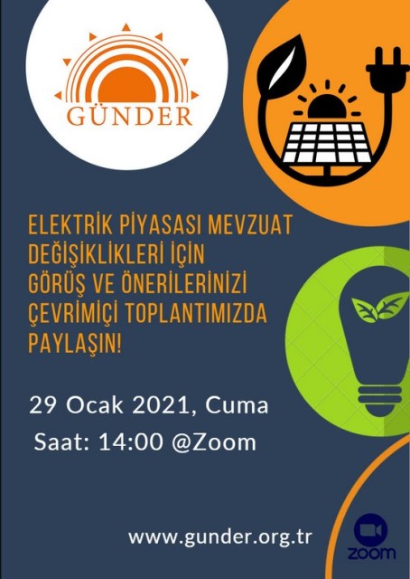 Elektrik Piyasası Mevzuat Değişiklikleri için Görüş ve Önerilerinizi, GÜNDER’in düzenlediği çevrimiçi online toplantıda ileterek paylaşabilirsiniz.