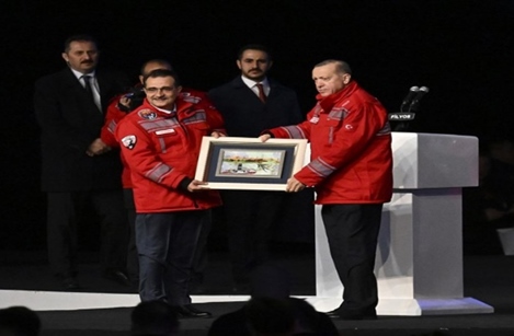 “Aylık mutfak ve sıcak su tüketimini karşılayacak bedava doğal gazınız hayırlı olsun” diyen Erdoğan, “Şimdi de Karadeniz gazının sevincini, mutluluğunu, coşkusunu 85 milyon doya doya yaşayabilelim diye ikinci müjdemizi açıklıyorum. Bir ay boyunca Türkiye’nin tamamındaki konutların doğal gaz tüketiminden ücret almayacağız. Yani mutfağın ve sıcak suyun yanı sıra ısınma dahil doğal gaz tüketiminin tamamını bir ay süreyle ücretsiz yapıyoruz. Halen sürmekte olan ve yeni başlatacağımız çalışmalarla milletimizin karşısına daha pek çok müjdeyle çıkacağız.” Konuşmasının ardından Cumhurbaşkanı Erdoğan’a, Enerji ve Tabii Kaynaklar Bakanı Fatih Dönmez günün anısına bir hediye takdim etti.