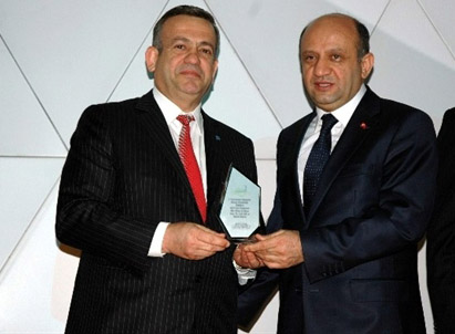Törende Merinos Halı Yönetim Kurulu Başkanı Ali Erdemoğlu plaketini, Bilim Sanayi ve Teknoloji Bakanı Fikri Işık’tan aldı.