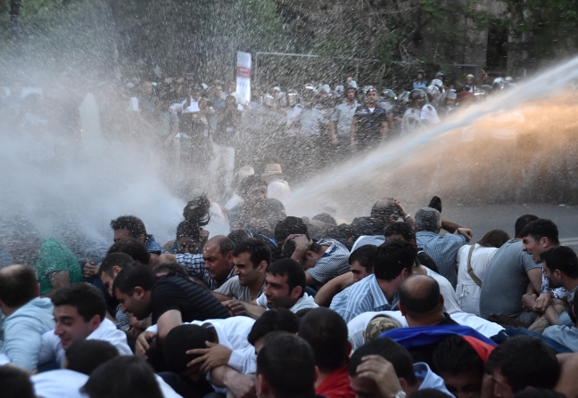 Ermenistan’ın başkenti Erivan’da son birkaç aydır gündemde olan elektrik zammını protesto amaçlı devam eden gösteriler dün zirveye çıktı ve polisle çatışmaya dönüştü. Binlerce öfkeli Ermeni vatandaşı, zamdan vazgeçilmesi için devlet başkanlığı sarayına yürürken önlerine kesen polisle çatıştı.