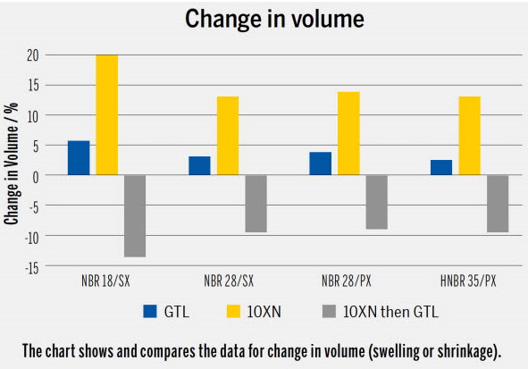 “There was a significant difference in swelling between NBR test pieces treated with GTL and those treated with naphthenic oil. The volume change was far greater in the pieces that had been placed in naphthenic oil.”