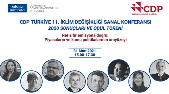 Türkiye çalışmalarını Sabancı Üniversitesi Kurumsal Yönetim Forumu’nun üstlendiği dünyanın en büyük çevre raporlama platformu olan CDP, Türkiye’deki şirketlerin iklim değişikliği ve su riskleri yönetimine dair analiz ve bulgularını ve 2020 liderlerini CDP Türkiye 11’inci İklim Değişikliği Sanal Konferansı’nda paylaşacak.