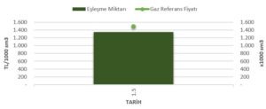 Organize Toptan Doğal Gaz Satış Piyasası (OTSP) dahilinde 01.03.201901.05.2019 tarihleri arası ortalama Gaz Referans Fiyatı (GRF) 1,488.24 TL/1000 sm3 olarak belirlenirken, aynı tarihler arasında toplam gerçekleşen eşleşmelerin miktarı ise 1,346 x1000 sm3 olarak belirlendi. İlgili tarihler arasında günlük Gaz Referans Fiyatı (GRF) ile Eşleşme Miktarı verileri aşağıdaki grafikte yer almaktadır.
