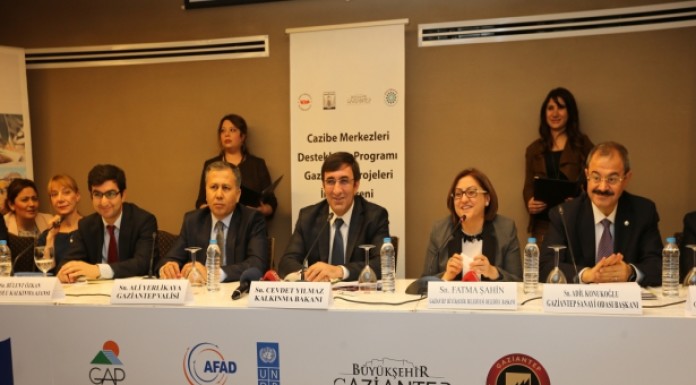 Kalkınma Bakanlığı’nın “Sanayide Enerji Verimliğinin Arttırılması Pilot Uygulamaları Mali Destek” programı için Gaziantep’e gelen Kalkınma Bakanı Cevdet Yılmaz ile projenin lasmanına yapan Büyükşehir Belediye Başkanı Fatma Şahin, burada projenini içerğini anlattı.