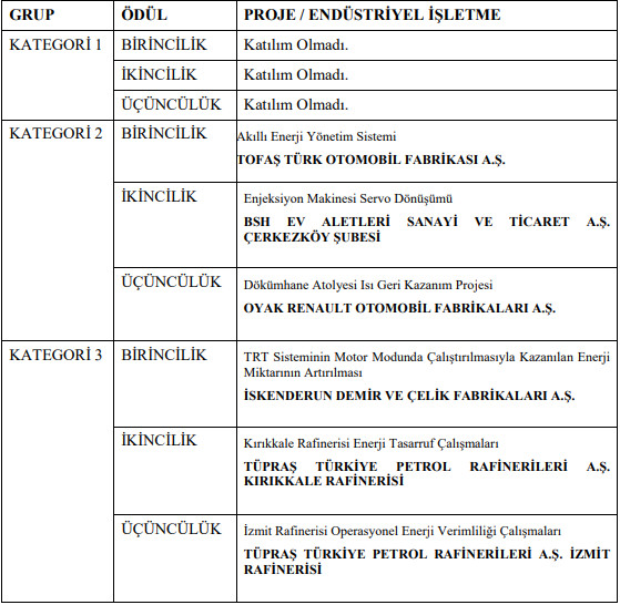 (Turkish) ‘Sanayide Enerji Verimliliği Proje’ Yarışma Sonuçları Açıklandı