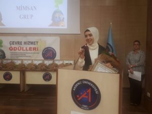 Mimsan Grup’un ödülünü kuruluş adına Mimsan Grup Satış ve Pazarlama Müdürü Hacer İlhan Yiğit aldı. Hacer İlhan Yiğit’e Mimsan Grup’un ödülünü Akdeniz Üniversitesi Çevre Sorunları Araştırma ve Uygulama Merkezi Müdürü Prof. Dr. Şule Orman takdim etti.