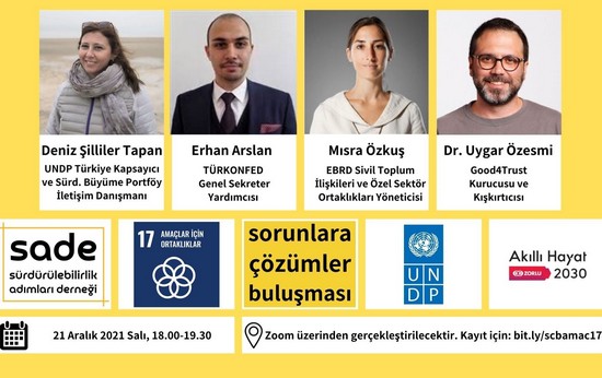 Sürdürülebilirlik Adımları Derneği’nin, UNDP Türkiye çözüm ortaklığı ve Zorlu Holding desteğiyle yürüttüğü Sorunlara Çözümler Buluşması’nın 21 Aralık 2021 Salı günü gerçekleştirilecek olan oturumunda Sürdürülebilir Kalkınma Amaçları’nın 17. Maddesi ‘Amaçlar için Ortaklıklar’ başlığı ele alınacak.