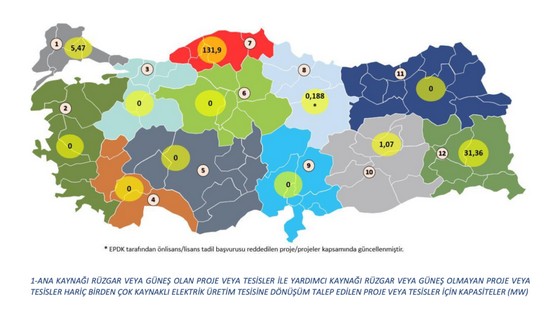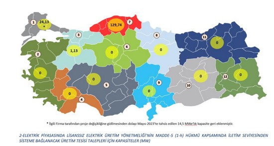 TEİAŞ tarafından hazırlanan bölgesel kapasitelere buradan ve Elektrik Piyasasında Lisanssız Elektrik Üretim Yönetmeliği İletim Sistemine Bağlantı Başvuruları Değerlendirme Raporuna buradan ulaşabilirsiniz.