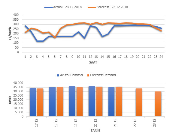 * Estimation Model; It was developed in MATLAB software development platform by using SARIMA (Seasonal Autoregressive Integrated Moving Average) which is a statistical estimation method. The daily published market clearing price and actual consumption data are used in EPİAŞ Transparency Platform as input data in the model and all other used data. Please contact us to get detailed information about the model.