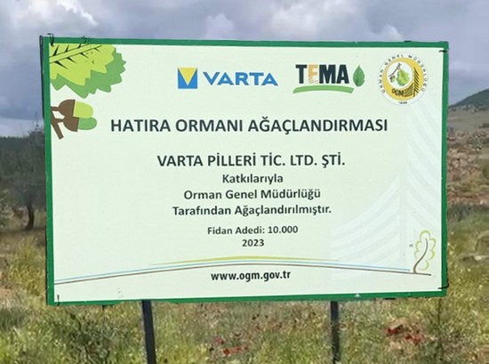 VARTA Pilleri Türkiye doğaya karşı sorumluluk bilinciyle hareket ediyor ve sürdürülebilirlik kapsamında faaliyetlerini genişletiyor. Bu alanda birçok proje ve kampanyayı hayata geçiren Varta Pilleri, TEMA Vakfı ile geçtiğimiz yıllarda başlayan bir iş birliği gerçekleştirdi. TEMA Vakfı’nın desteğiyle Gaziantep’te bir hatıra ormanı kuran VARTA, bu projeyle atmosferden daha fazla karbon temizlenmesine katkıda bulunmayı hedefliyor.