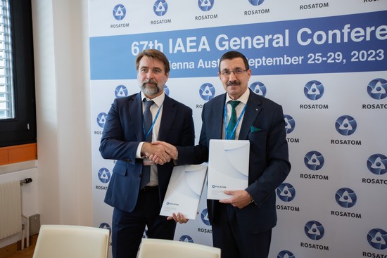 Mutabakat zaptına, Viyana’da düzenlenen Uluslararası Atom Enerjisi Ajansı (UAEA) 67’inci Genel Kurul Toplantısı’nda Rosatom Kalkınma ve Uluslararası İlişkiler Bölümü Başkan Yardımcısı – Uluslararası Ticaret Direktörü Boris Arseev ile COMENA Genel Direktörü Abdelhamid Mellah imza attı.