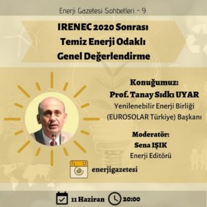 Enerji Gazetesi Sohbetleri – 9: ‘IRENEC 2020 Sonrası Temiz Enerji Odaklı Genel Değerlendirme’ Türkiye Yenilenebilir Enerji Birliği (EUROSOLAR Türkiye), birliğin vizyonu doğrultusunda %100 yenilenebilir enerjiye geçişin teknik, ekonomik...