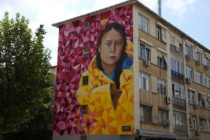 İklim krizine dikkat çekmek için okul boykotu hareketini başlatarak yaşıtları arasında farkındalık oluşturan ve Nobel Barış Ödülüne aday gösterilen 16 yaşındaki İsveçli iklim aktivisti ‘Greta Thunberg’in portresi mural...