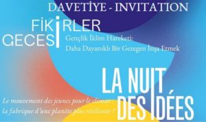 Tüm dünyada Institut français’ler ağı tarafından düzenlenen ve bu yıl “Birlikte Yeniden Tasarlamak” temalı Fikirler Gecesi kapsamında, sizi “daha dayanıklı bir Gezegen inşa etmek” ile ilgili gençlerin özel görevleri üzerine...