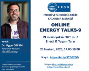 Kadir Has Üniversitesi Enerji ve Sürdürülebilir Kalkınma Merkezi’nin düzenlediği “Online Energy Talks” dizisinin ) 9’uncusu, 23 Haziran Salı günü saat 17.00-18.00 arasında https://good4trust.org/ ‘un Kurucusu...