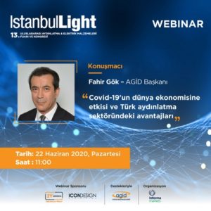 Aydınlatma Gereçleri İmalatçıları Derneği (AGİD) Yönetim Kurulu Başkanı Fahir Gök, 22 Haziran 2020, Pazartesi günü saat 11:00’da online platformda canlı olarak yayınlanacak webinarda “Covid-19‘un dünya ekonomisine etkisi...