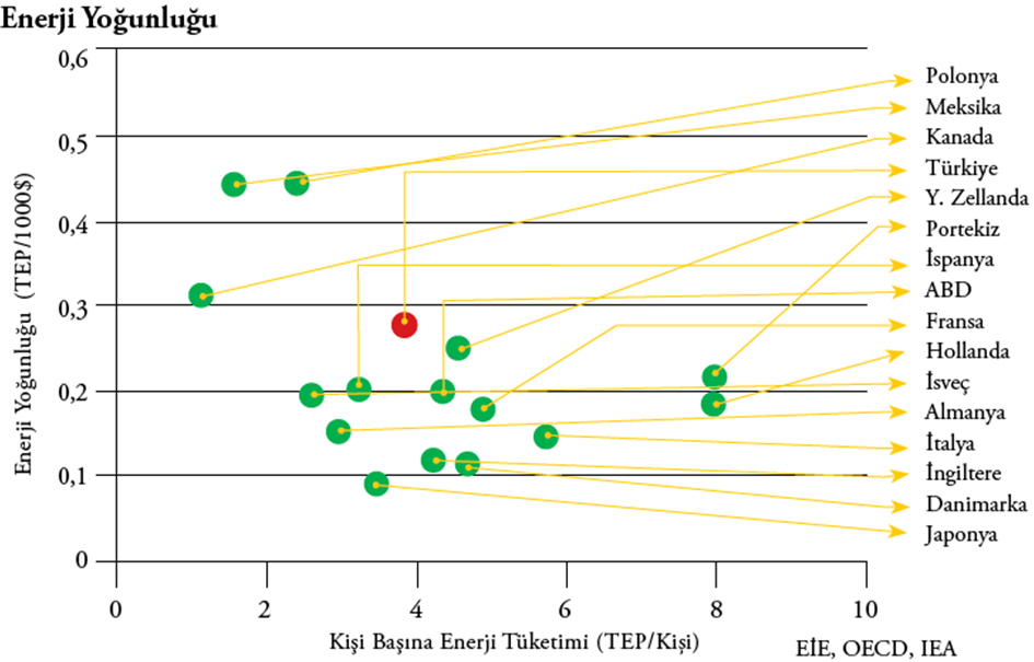 Ülkemizin enerji yoğunluğu dünya ortalamasının üzerindedir.