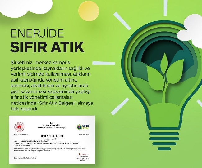 kazanılması kapsamında yaptığı sıfır atık yönetimi çalışmaları neticesinde ‘Sıfır Atık Belgesi’ni aldı.