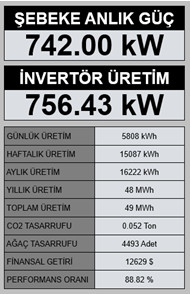Günümüzde GES Sahalarında yapılan ve müşteriyi yanıltan “Performans Oranı” konusu ciddi olarak irdelenmesi gereken bir konudur. Bir santraldeki “Sistem Performansı” Inverter’lerde enerji üretildikten sonra kablo kayıpları ve trafo kayıpları göz önünde bulundurularak hesaplanmalıdır. Özellikle SCADA Sistemi ( uzaktan izleme ve takip sistemi ) kurulmayan santrallerde müşteriye sunulan “Performans Oranı” sadece Inverterlerin performans oranı olup trafo ve kablo kayıplarını gözardı etmekte, uzun yıllar için yapılacak yanlış hesaplamalara yol açmakta ve dolayısı ile müşterinin cebine negatif yönde yansımaktadır. IES Teknoloji olarak kurulan SCADA Sistemi ( uzaktan izleme ve takip sistemi ) ile enerji üretimi “Enerji Kalite Analizörü” üzerinden Meteoroloji istasyonundan alınan anlık yüzey ışınımını dikkate alarak hesaplanmakta ve elde edilen “Sistem Performans Oranı” Anlık/Saatlik/Günlük/Haftalık/Aylık/Yıllık olarak raporlanmaktadır.