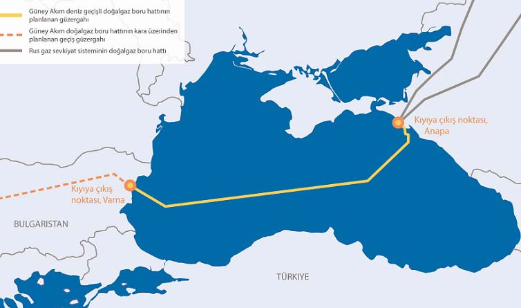 Rusya’dan Avrupa’ya Ukrayna’yı by-pass ederek doğalgaz taşımak için Karadeniz’in altından geçmesi planlanan Güney Akım hattı için Türkiye olu