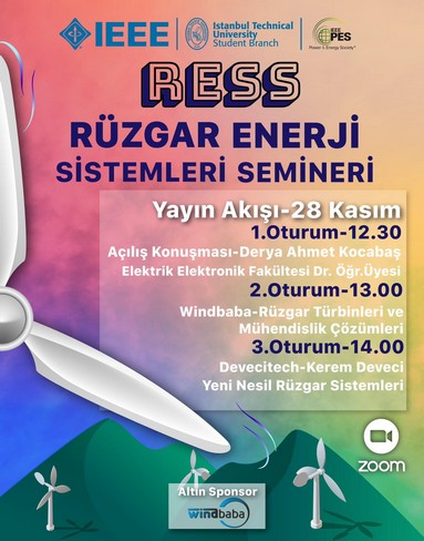 28 Kasım Cumartesi saat 12.30’da IEEE İTÜ Power and Energy Society Komitesi’nin organize ettiği RÜZGAR ENERJİ