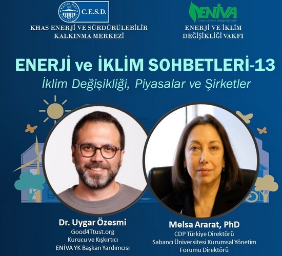 Kadir Has Üniversitesi Enerji ve Sürdürülebilir Kalkınma Merkezi (CESD) ile Enerji ve İklim Değişikliği Vakfı (ENİVA) tarafından düzenlenen Enerji ve İklim Sohbetleri-13, 06 Nisan Salı günü saat 19.00-20.00 arasında gerçekleştirilecektir.