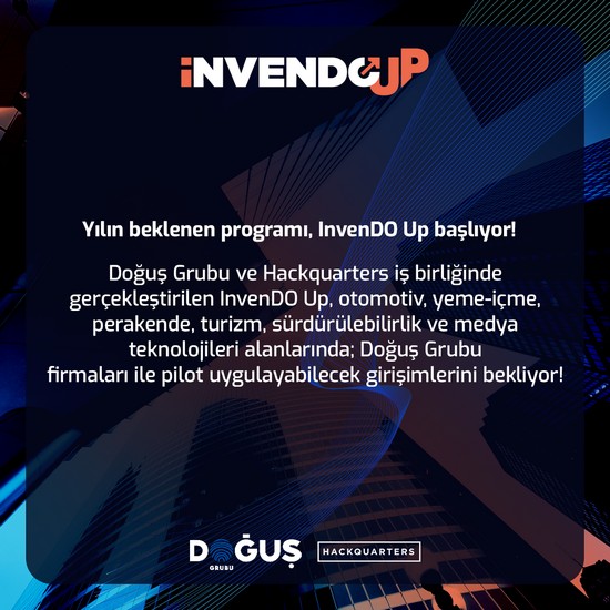 Kurum içi girişimcilik kültürünü geliştirmek adına Doğuş Grubu çatısı altındaki faaliyetlerine Doğuş Teknoloji liderliğinde çalışanlara projelerini hayata geçirme fırsatı sunan InvenDO Kurum İçi Girişimcilik Programı’nın ardından şimdi de erken aşama girişimler için oluşturulan ‘InvenDO Up Hızlandırma Programı’ Türkiye’deki girişimcilik ekosistemine hızlı bir giriş yapıyor.