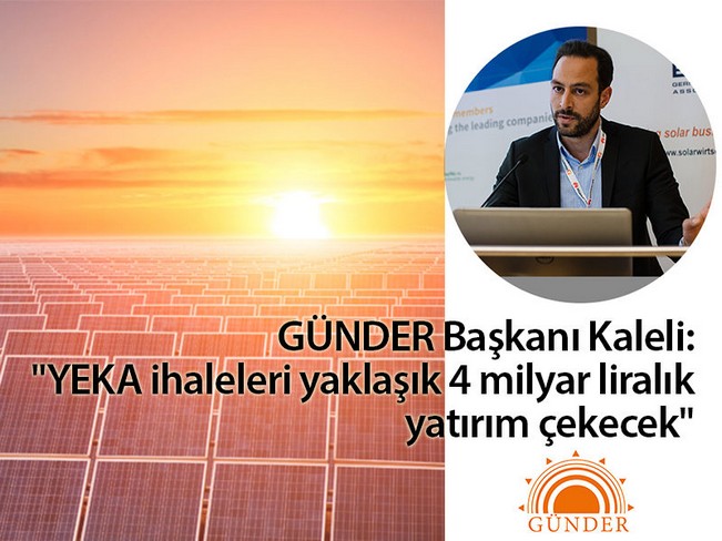 Uluslararası Güneş Enerjisi Topluluğu Türkiye Bölümü (GÜNDER) Başkanı Kutay Kaleli tarafından Ekim ayında yapılması planlanan ve kapasiteleri 10-50 mw arasında değişen toplamda 1000 mw’lık Yenilenebilir Enerji Kaynak Alanları (YEKA) ihaleleri ile yaklaşık 4 milyar liralık yatırım gerçekleştirileceği belirtildi.