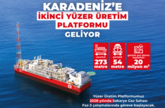 Karadeniz’deki Sakarya Gaz Sahası Geliştirme Çalışmalarını Faz-3 aşamasına taşıyacak önemli bir adım atıldı. Karadeniz’deki üretime destek verecek olan gemi formunda yeni bir Yüzer Üretim Platformunun (FPU) temini için Çin menşeli bir firma ile anlaşmaya varıldı. Mühendislik, tedarik, imalat, kurulum ve devreye alma faaliyetlerini kapsayan sözleşme kapsamında, Çin’de platformun üretimine başlandı.