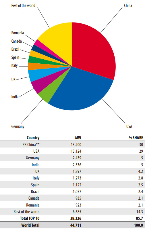 En fazla yeni rüzgar türbini kuran ülkeler *1