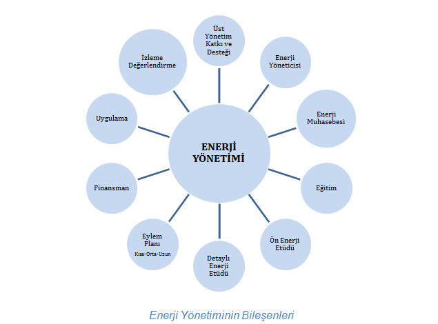 İşletmeler, tükettikleri enerjiyi etkin ve verimli kullanabilmek, enerji maliyetlerinin ekonomi üzerindeki yükünü hafifletmek için aşağıdaki gibi bileşenlerden oluşan bir enerji yönetim sistemi oluşturabilirler.