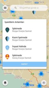 Bir diğeri ise Enisolar Enerji şirketinin MegaWhat mobil uygulaması. Bu uygulama ile Türkiye’nin rüzgar ve güneş enerjisi santralleri haritasına ulaşabiliyorsunuz.